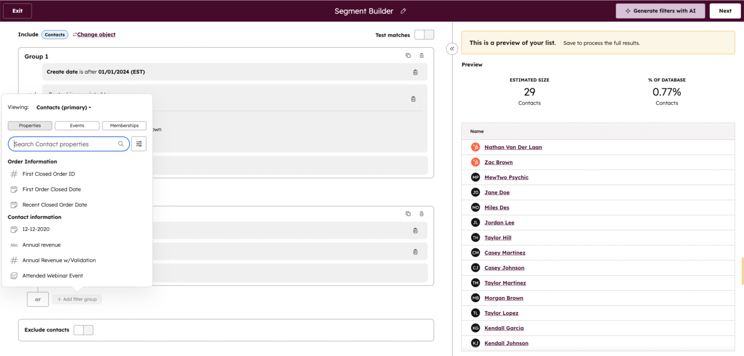 Nadat je je filters hebt toegevoegd, sla je je segment op om te zien welke records zijn opgenomen.